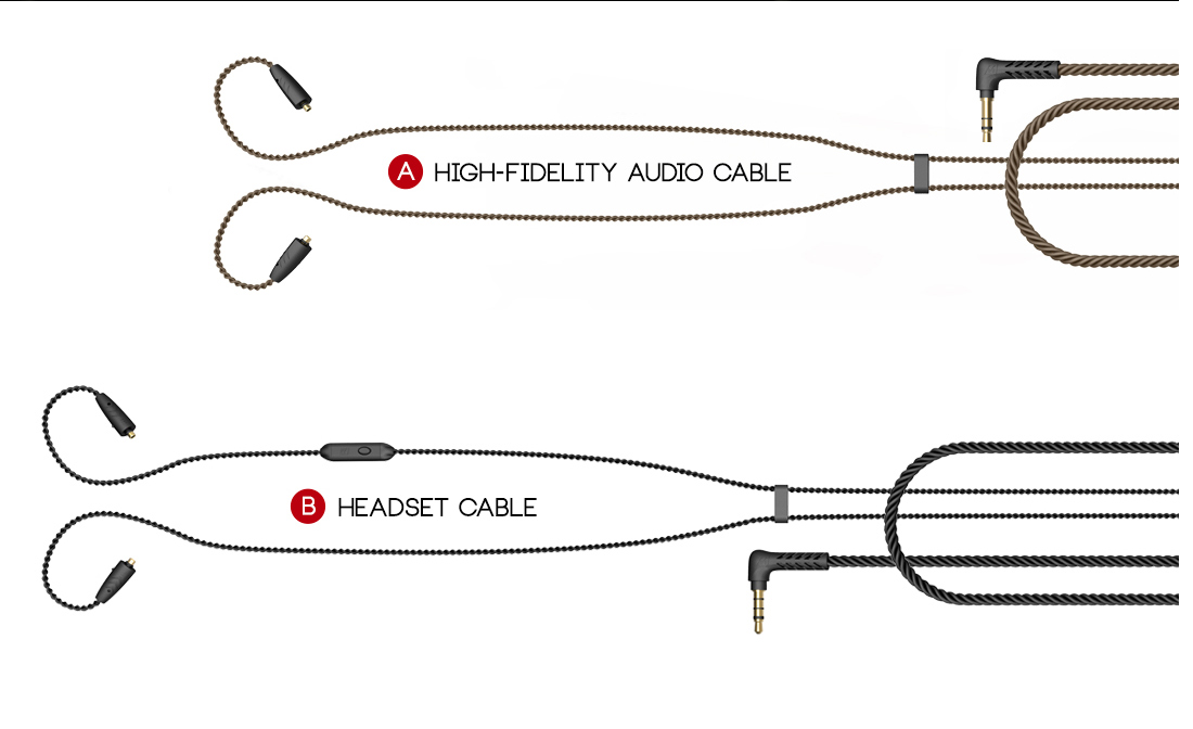 Za transmisję sygnału audio odpowiada wysokiej klasy kabel z posrebrzanej miedzi OFC o czystości 99.99%. Kabel jest w pełni wymienialny dzięki zainstalowanym w słuchawkach uniwersalnym gniazdom MMCX.